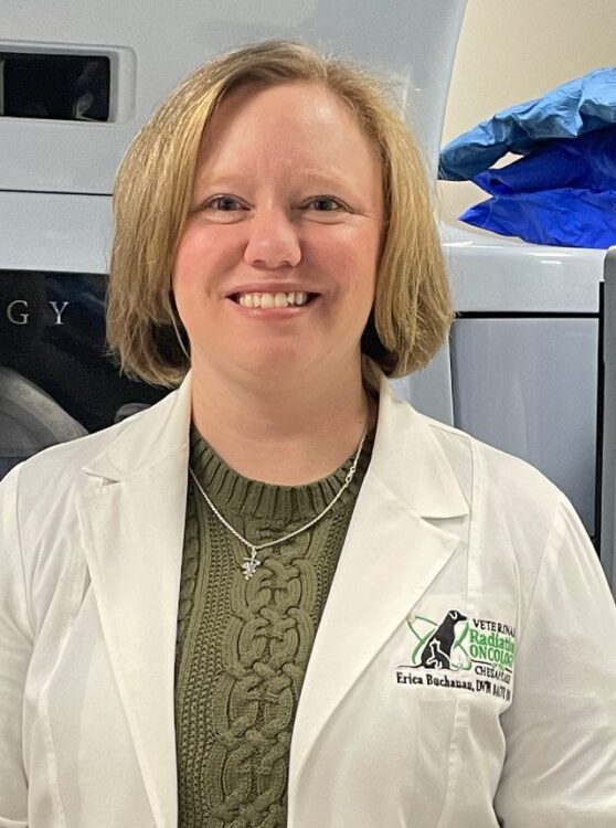 Dr. Erica Buchanan attended St. George’s University School of Veterinary Medicine, completing her fourth year at the University of Florida College of Veterinary Medicine in 2014. She then went on to complete a rotating internship at BluePearl Veterinary Partners in Tampa, FL, and a specialty internship in radiation oncology at University of Pennsylvania School of Veterinary Medicine. Dr. Buchanan moved to New York City in 2016 for a residency in radiation oncology at the Animal Medical Center. Dr. Buchanan passed her boards exam and became a Diplomate of the American College of Veterinary Radiology in Radiation Oncology in 2020.